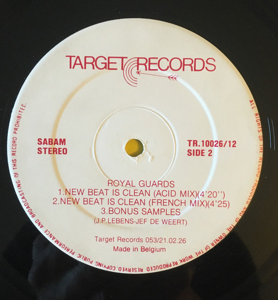 Side 2 label lists 2 mixes of ‘New Beat Is Clean’ plus ‘Bonus Samples’ but the vinyl only features 1 track.