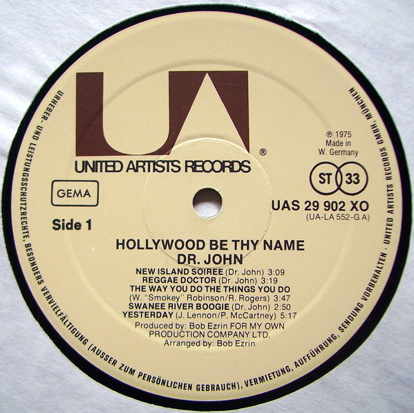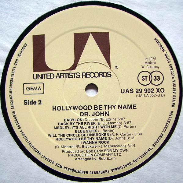United Artists Records GmbH, 8 München 22, Postfach 201 · Trademarks owned by United Artists Records, Inc. and used by United Artists Records GmbH, Munich 22, Postbox 201 under authorization.