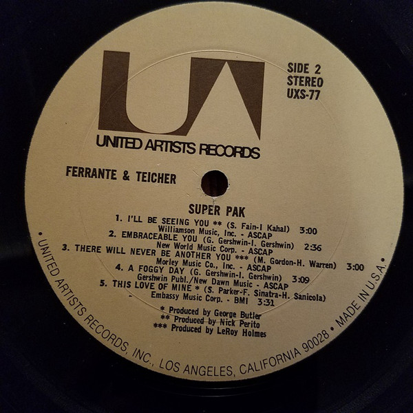 Printed in U.S.A. Jacket only mentions the names of the artists, but labels read “Superpak,” which is probably the actual title of the album, since all tracks have been previously reissued.